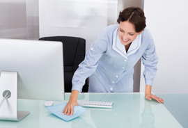 Exemples : nettoyage des bureaux, salles d’attente, parties communes, nettoyage et désinfection des sols, des sanitaires, dépoussiérages, vidage des corbeilles et mise en place des sacs poubelles, nettoyage des vitres et surfaces vitrées, nettoyage et désinfection des tables d'examen …